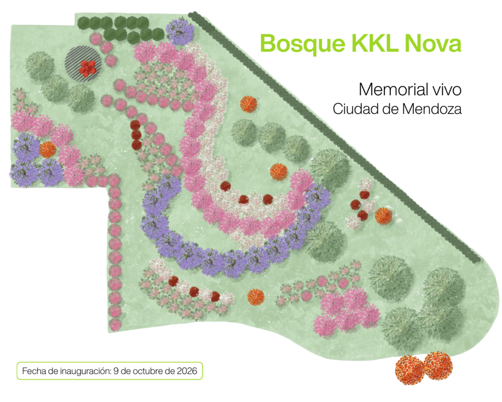 El Bosque KKL Nova es un memorial vivo que se está creando en la Ciudad de Mendoza, en conjunto con la Municipalidad. Cada uno de los 378 árboles representa una vida, una historia y una memoria que no se borra.